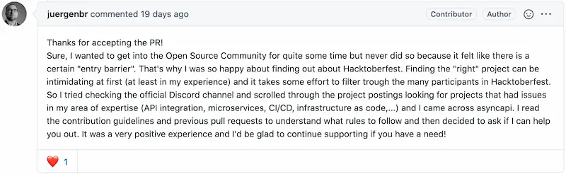 Let me conclude by saying that I hope the "harm to the open source made by DigitalOcean" is not as significant as the harm that such hate does to open source by discouraging new open-source contributors. However, this is just speculation. How can I consider any of these things harmful if I did not conduct scientific research? I can only confirm that Hacktoberfest did not harm AsyncAPI Initiative. On the contrary, it was pretty neat.
